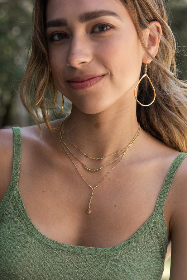 Dangling Peridot with Disc NecklaceDangling Peridot with Disc Necklace
