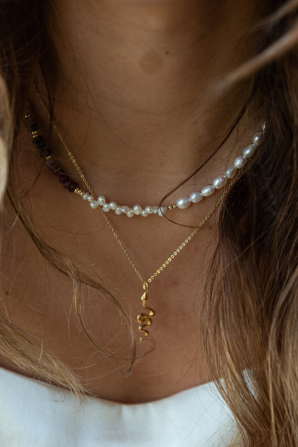 Tourmaline & Pearls with Box ChainTourmaline & Pearls with Box Chain
